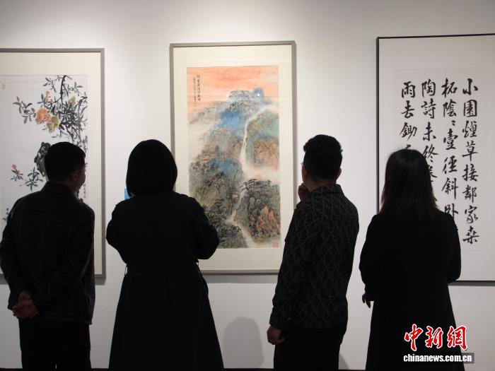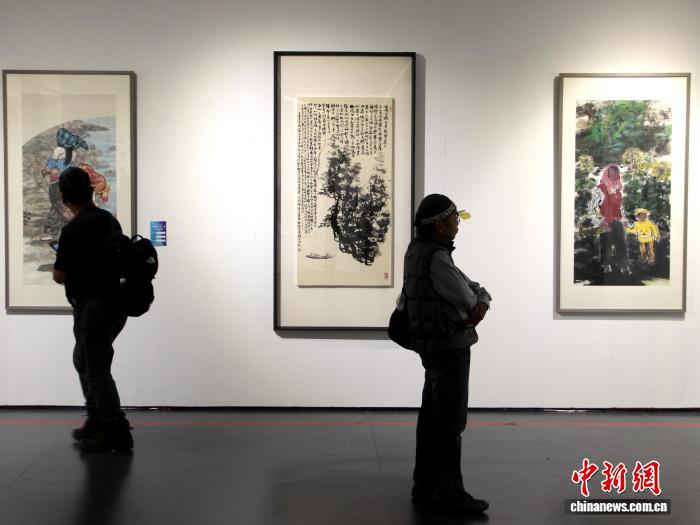 中,台湾区域撰着100件,铺期为4月4日至10日。图为公众观光字画大作。中新社记者 党旷野 摄