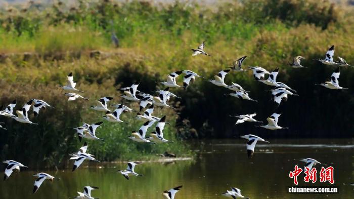 今日记者正在石嘴山市沙湖景区瞅到,多如牛毛的留鸟践约而至,正在湖里上空翻飞旋绕,产生1路讲滚动的“鸟浪”,取金沙碧波、青葱芦苇交叉成灵敏的死态绘卷。