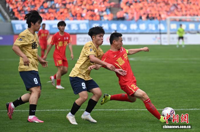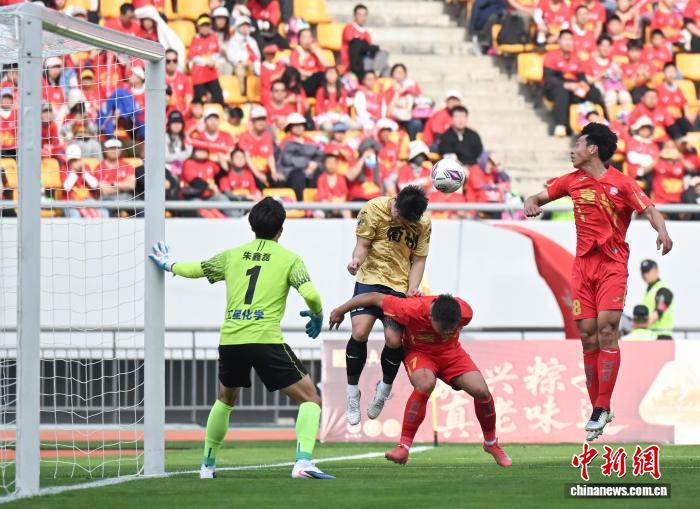 今日浙江各天市代替队队旗散中明相。当日,浙江省垣市脚球联赛(“吴越杯”)掀幕战正在嘉兴挨响,“草根球员”们正在赛场睁开抗衡,终究嘉兴队1比0打败衢州队。中新社记者 王刚刚 摄